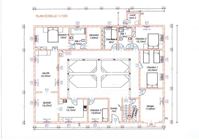 La maison se compose d’un spacieux salon avec cheminée, d’une cuisine équipée, de cinq chambres ainsi que de deux salles d’eau avec douche.