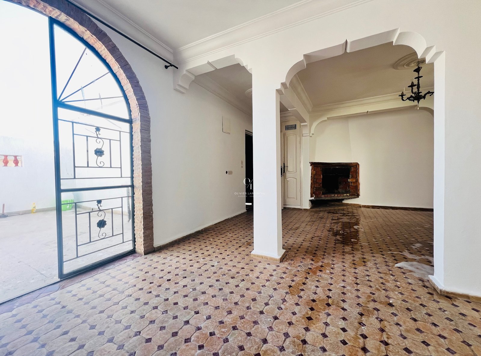 Il se compose d’une agréable entrée ouvrant sur un spacieux salon avec cheminée fonctionnelle, prolongé par une grande cuisine aménagée ouverte, offrant un espace de vie convivial et lumineux.