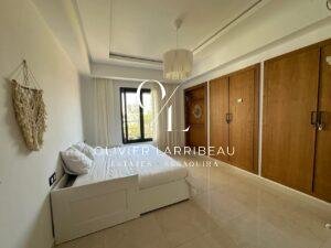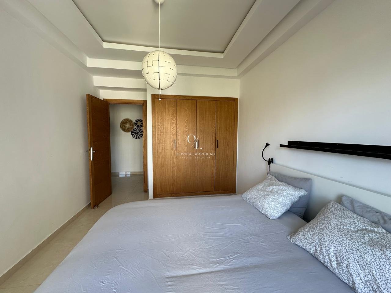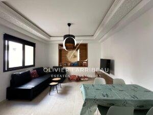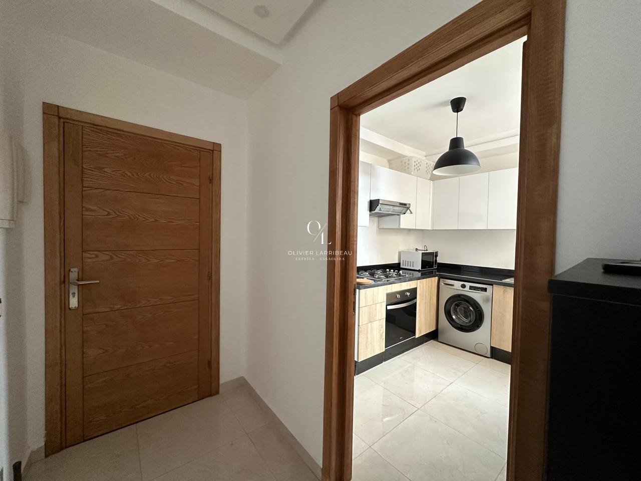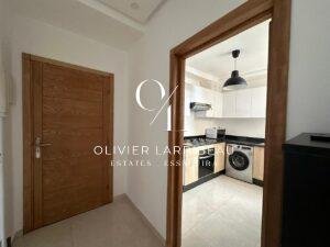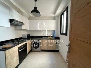 L’entrée s’ouvre sur un salon lumineux. La cuisine est entièrement équipée. Deux chambres doubles et d’une salle de bain.