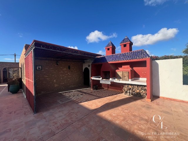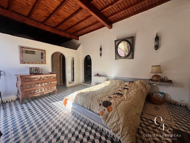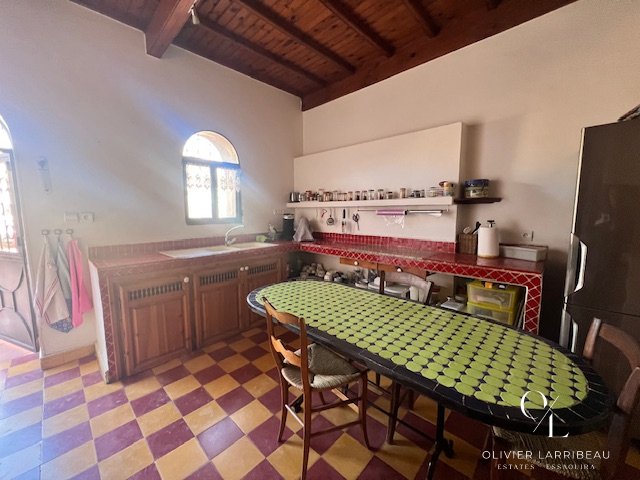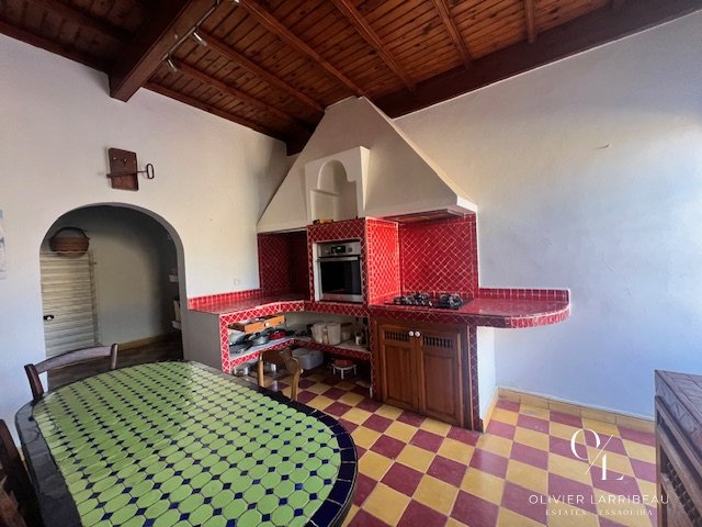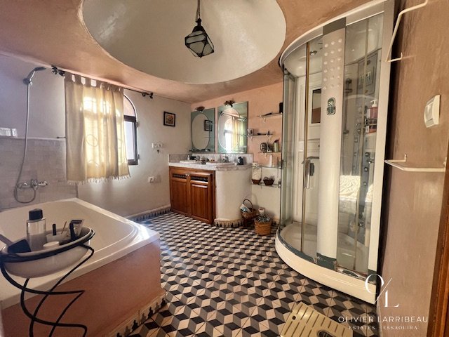 Elle dispose de cinq chambres spacieuses, chacune dotée de sa salle de bain et de ses toilettes privatives. Les espaces de vie sont chaleureux et accueillants, avec un salon TV et un salon marocain agrémenté d’une cheminée. La cuisine équipée, complétée par une arrière-cuisine et une buanderie répondra à tous vos besoins pratiques. Une salle à manger élégante complètent cet espace de vie fonctionnel.