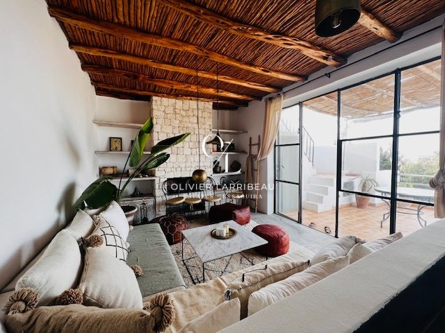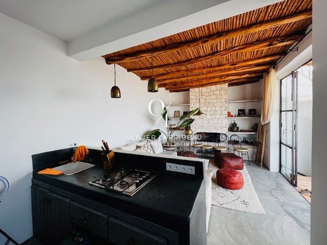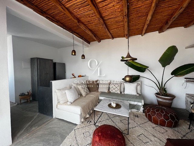 À l’étage, une cour et un séjour, une cuisine américaine, une chambre avec accès à la terrasse, et une terrasse supérieure offrant une vue imprenable sur la mer. Cette propriété offre un espace de vie agréable et des moments de détente uniques.