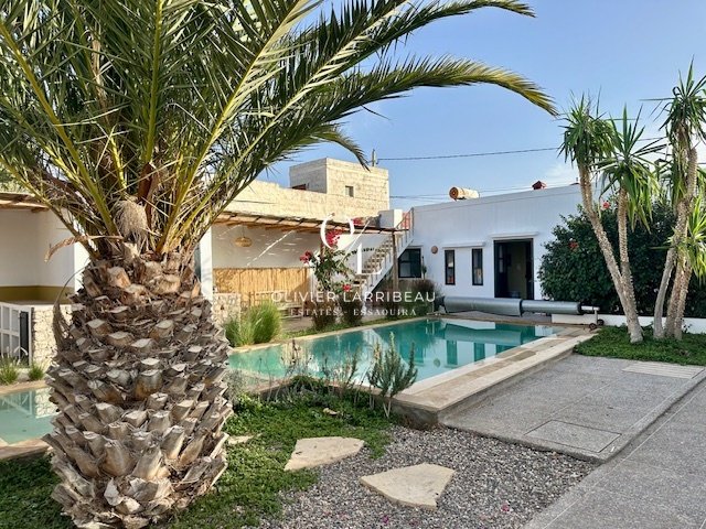 charmante maison en zone urbaine, idéale pour profiter d’un cadre paisible tout en restant proche des commodités. Sur un terrain de 476 m², cette propriété bénéficie de deux habitations indépendantes, un jardin, une piscine privée et une terrasse offrant une vue dégagée sur la région.