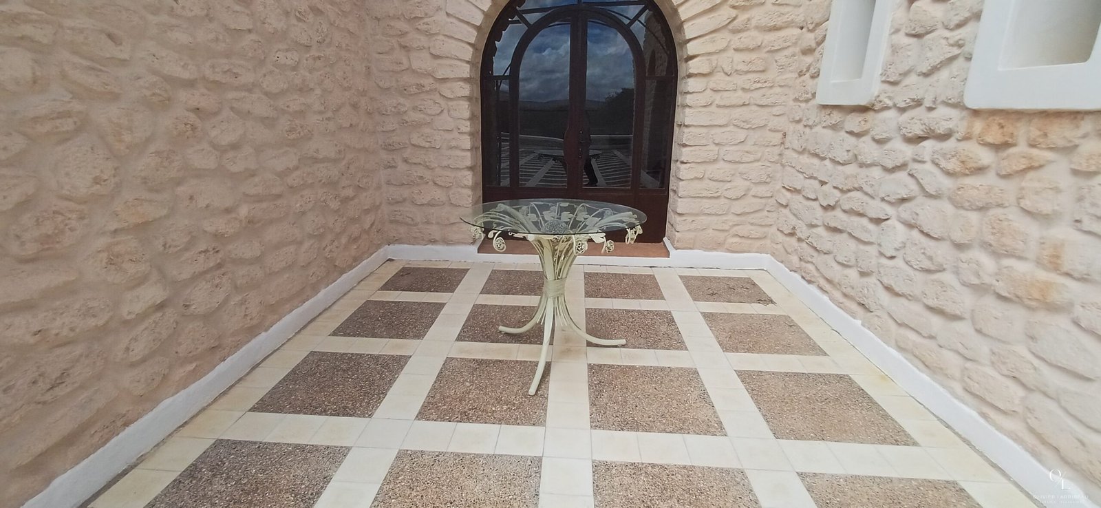Cette belle maison de style beldi contemporain est construite en pierre et matériaux locaux, avec une architecture soignée.