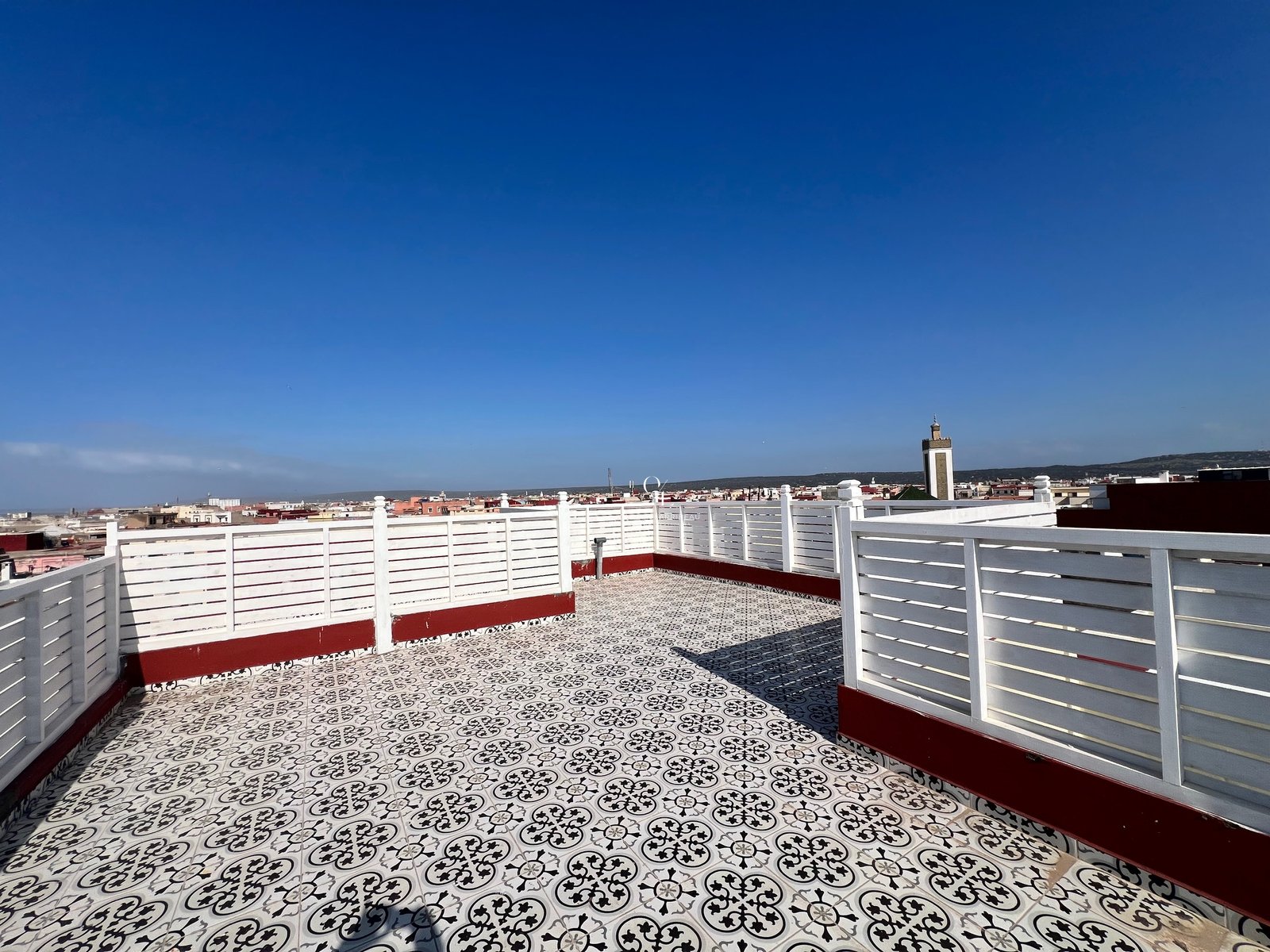 Cet immeuble bénéficie de trois appartements titrés ;1 er étage un appartement de 90 M2 lumineux bénéficiant de deux belles chambres et deux salles de bain et deux toilettes; Un grand salon ainsi qu’une cuisine aménagée.Prix 91 000 euros hors frais2 em étage le même appartement plus lumineux . 90 M2 avec deux chambres deux salles de bain et deux toilettes. Grand salon et cuisine aménagée.Prix 91 000 euros hors frais.3 em étage un appartement de 50 M2 bénéficiant d’une entrée sur un salon très lumineux, une chambre double avec salle de bain et toilette, une autre salle e bain toilette invité ainsi qu’un cuisine aménagée; Cet appartement bénéficie également d’une terrasse de plain pied et d’un roof top aménageable vue à 360 degrés sur la ville;Prix 92 000 euros hors frais.Très belles finitions; Volets électrique partout; Interphone. Environnement calme car situé dans une petite ruelle très proche de la médina.Afficher toute la description