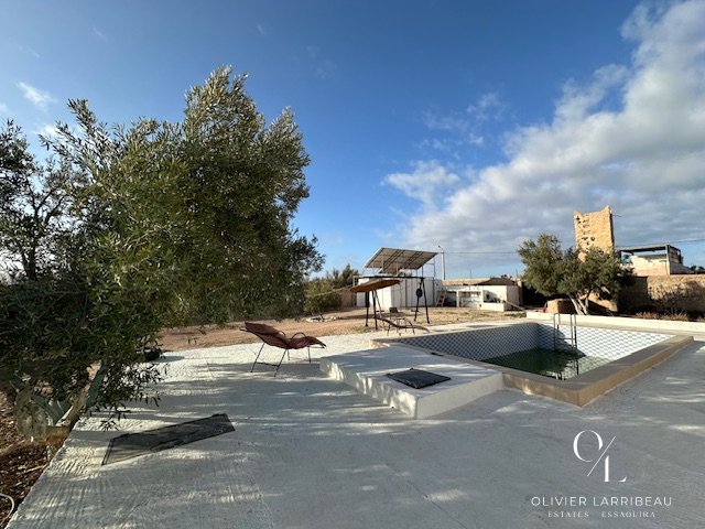 Profitez du jardin orienté plein Est avec piscine et 80 oliviers. Les panneaux solaires soulignent l’engagement écologique. Vue dégagée pour une atmosphère paisible.