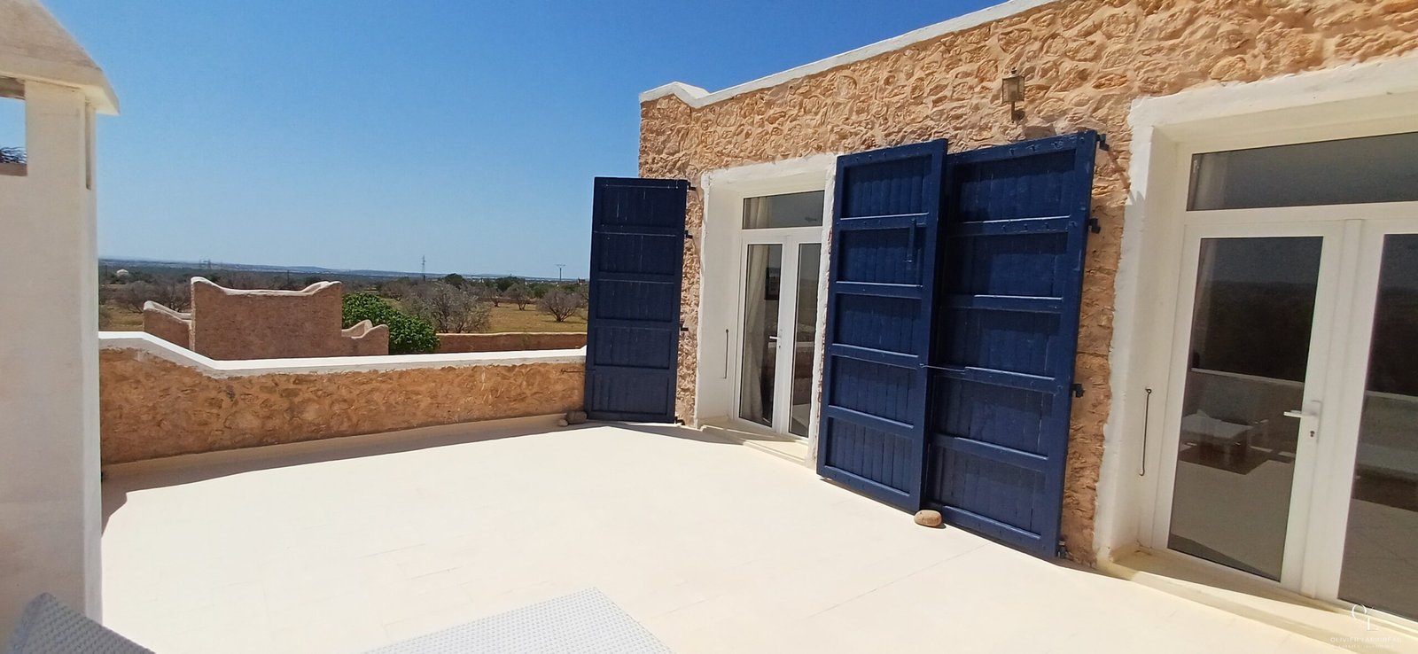 La propriété comprend également 30 oliviers, deux panneaux solaires, un raccordement à l’eau, et un compteur électrique rechargeable par carte.
