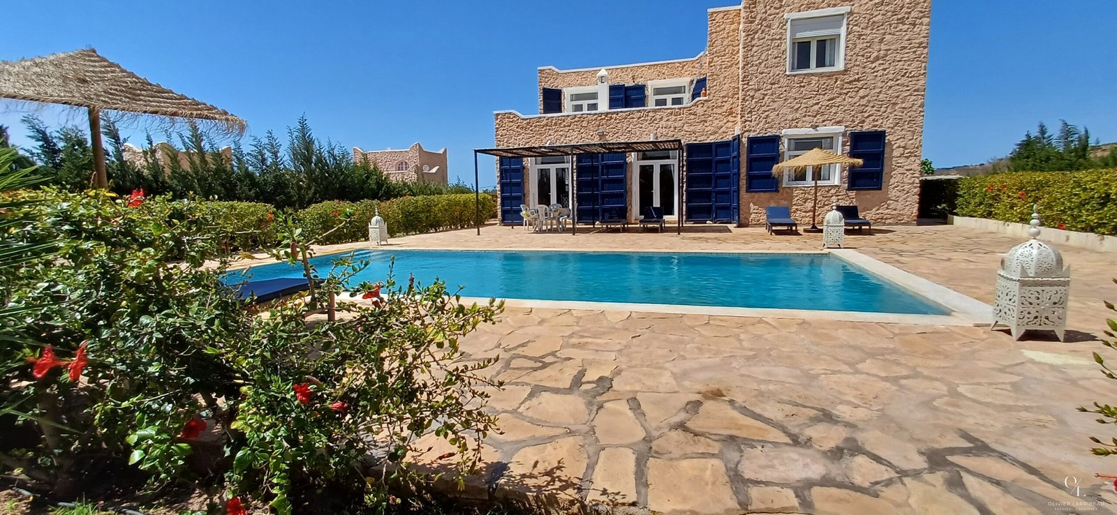 Maison beldi de campagne R+1 de 364 m² à quelques kilomètres d’Essaouira, sur la route de Marrakech, construite sur un terrain arboré de 3983 m².