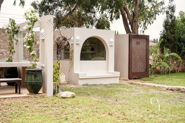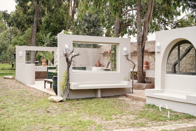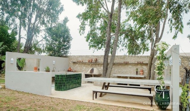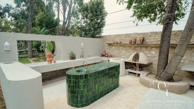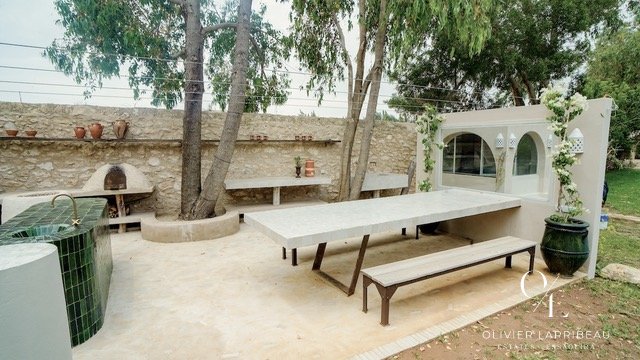 – Cuisine extérieure de 55 m² : four à pain, méchoui, bar couvert et fermé, WC, très grande table.