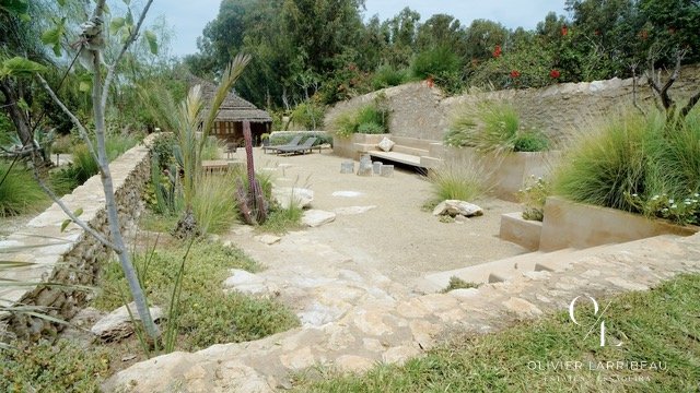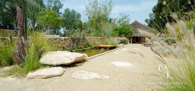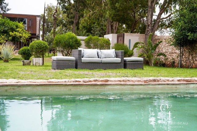 Ce bien d’exception se compose de plusieurs bâtis indépendants, reliés par une architecture paysagère remarquable : 3 bassins d’eau, une piscine à débordement, un couloir de nage de 12 m, un lac avec cascade et fontaine, et un système de séguia qui traverse le domaine, le tout apportant une ambiance apaisante et unique.