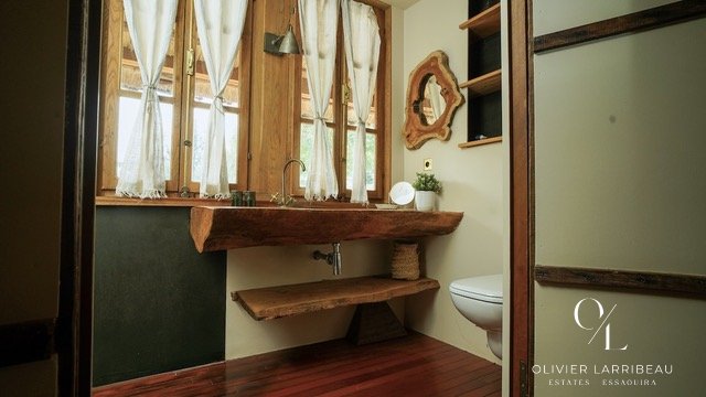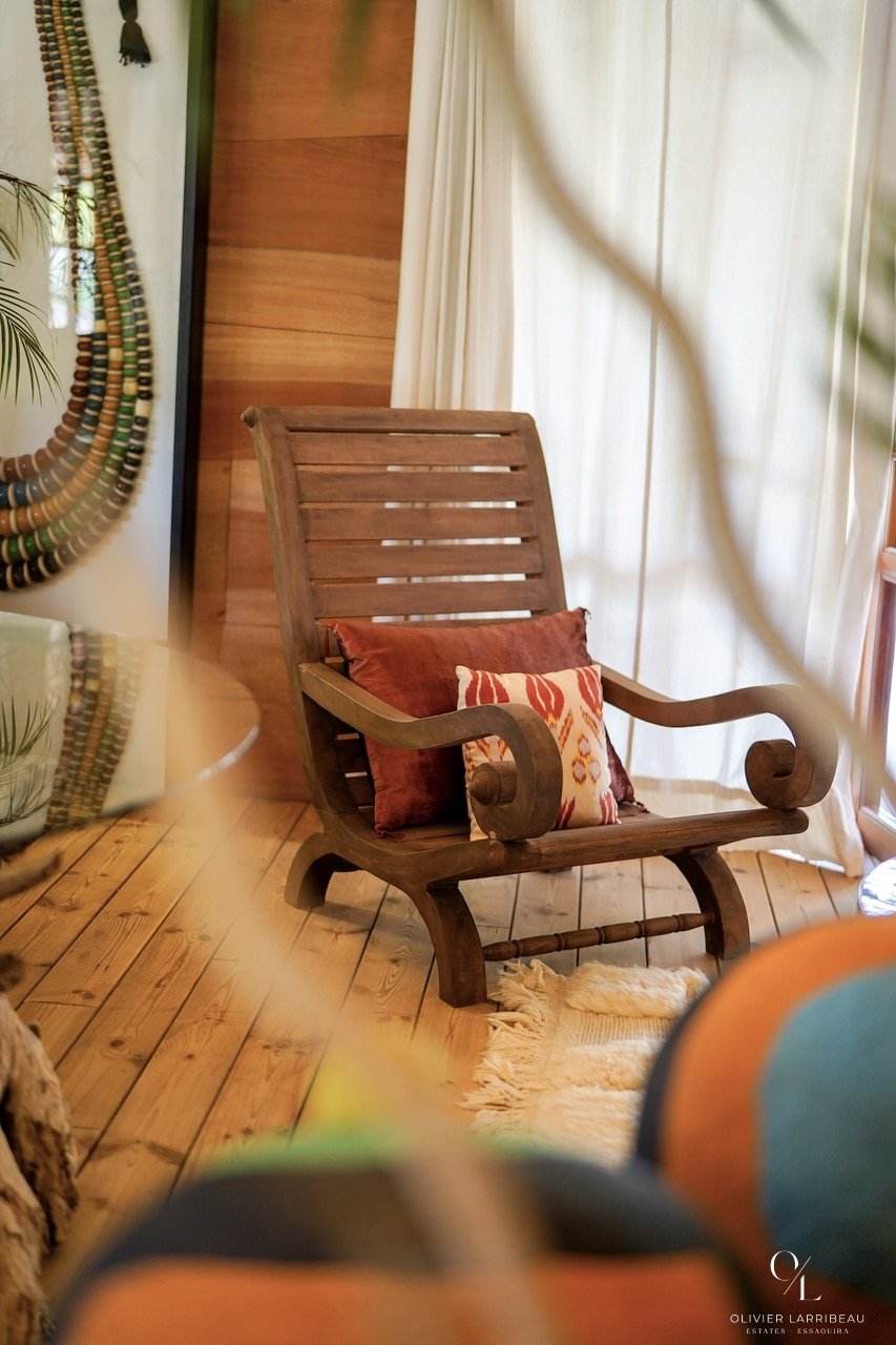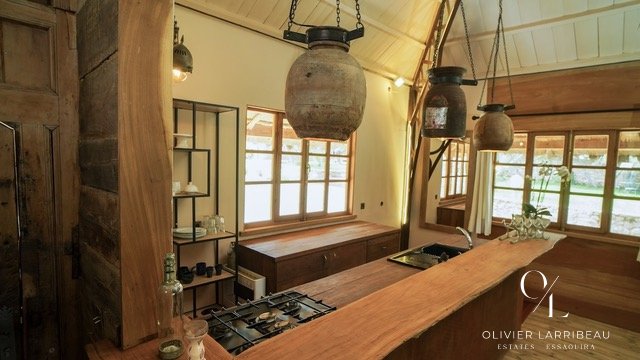 Lieu magique avec une paillote en bois entourée d’un lac privé avec cascade et fontaine. Cette vieille dame de plus de 300 ans est une pièce unique. Sur 85M2 habitable elle offre une chambre, salon, cuisine, salle d’eau, climatisation plus une grande terrasse couverte de 50 m² face au lac et son Jardin privé avec bassin d’eau.