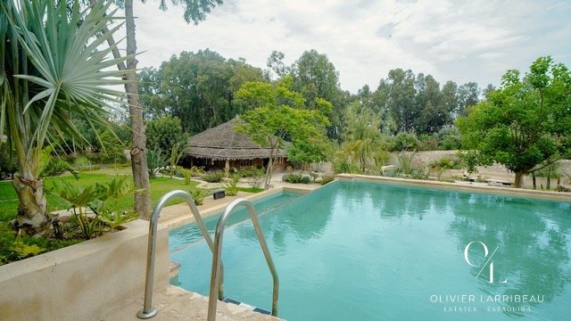 Propriété D’Exception À Vendre Sur 5000 M2, Avec AVNA – Domaine Unique Avec Bassins, Piscine À Débordement, Lac Privé, Seguia, Cascade Et Jardin Arboré – Région Paisible Entourée D’arganiers