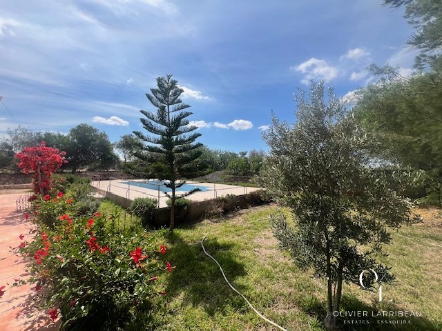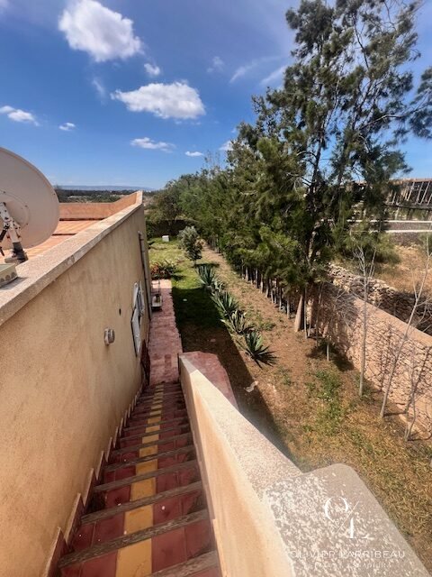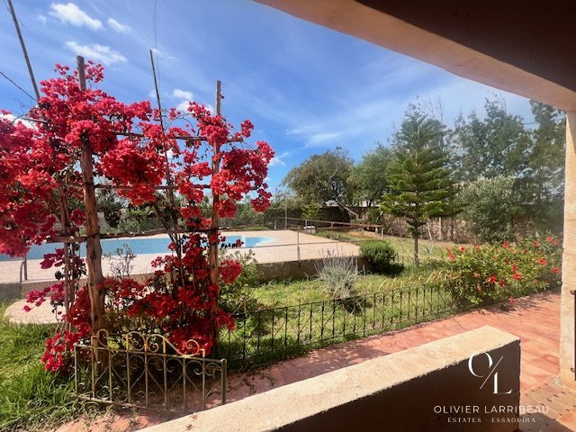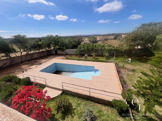 Propriété située en zone urbaine proche d essaouira. Sur 2000 m2 de terrain clos arboré et gazonné, cette petite maison bénéficie d une entrée desservant un grand salon cheminée très lumineux, une cuisine donnant sur une terrasse plein sud côté piscine, deux belles chambres ainsi que deux salle de Bain . Une pièce de rangement ou 3 em chambre cote Sud. Terrasse accessible avec belle vue sur la campagne. Piscine .