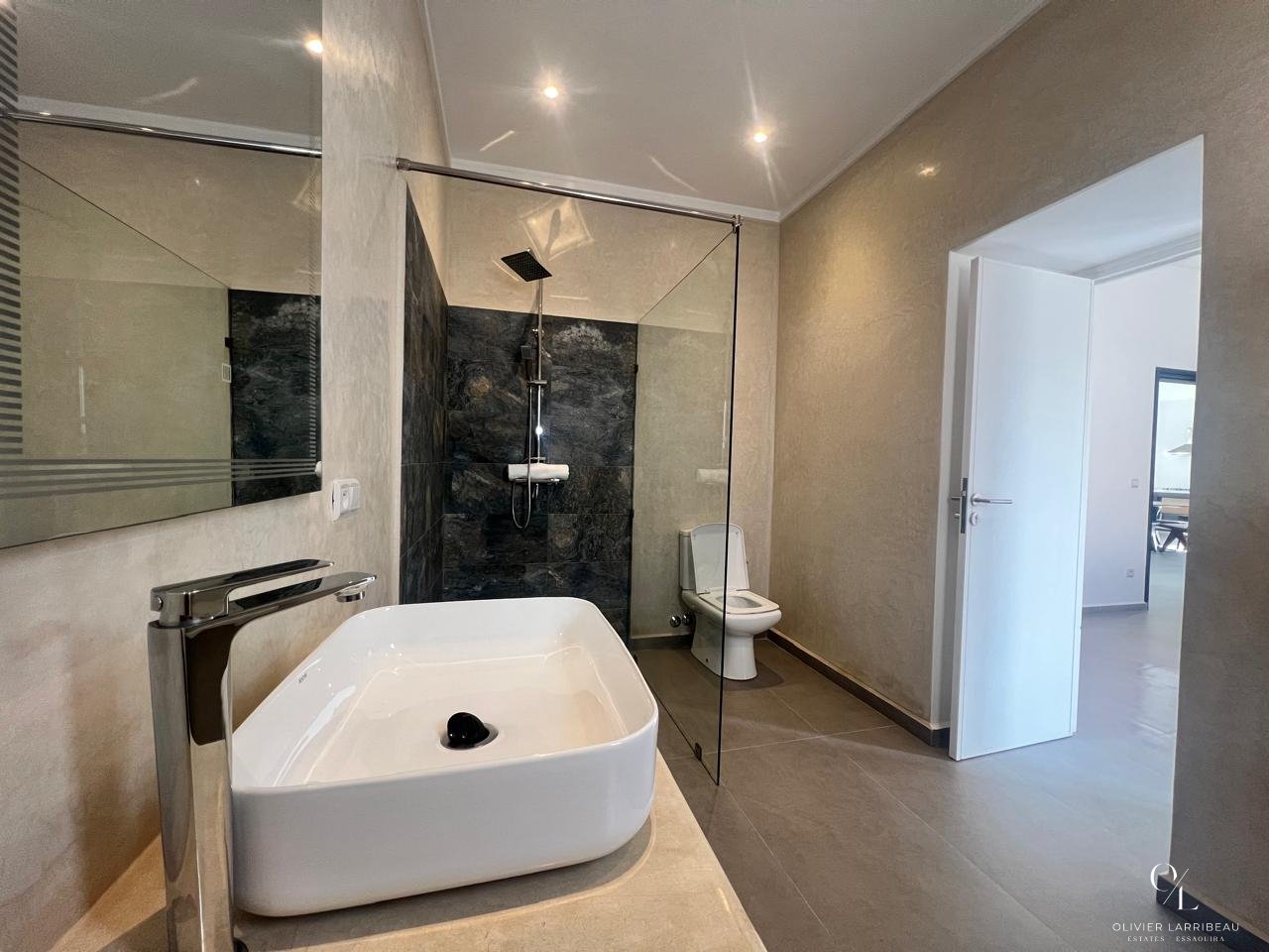 Très belle propriété située à 7 kilomètres d essaouira en zone urbaine. Copropriété de 3 villas indépendantes avec accès commun , cette villa est implantée sur un terrain de 600 m2. Elle se compose d une entrée desservant un vaste salon et d une cuisine moderne à aménager et une buanderie . 3 chambres avec placards et salle de bain (douche vasque et toilette), ainsi qu un toilette invité.