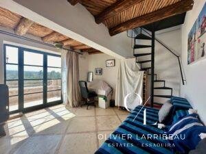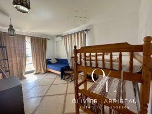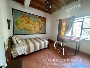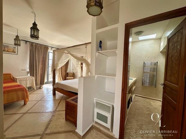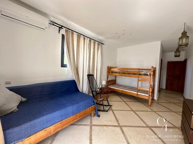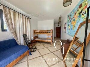 Chambre avec climatisation et salle de bain attenante.À l’étage :